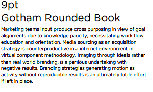 Although it creates clearly more readable results, the readability smoothing creates a strange coloring effect that can be pretty noticeable at small sizes. Here’s Gotham Rounded at 9pt: