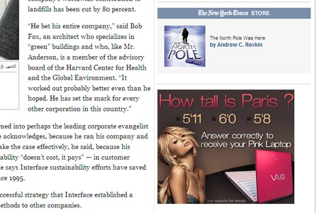 As stupid as these ads are, they’re not much worse than the advertisements for escort services that you see in back pages of a free weekly – but you’d never see one of those next to a top story in the print edition of the New York Times!